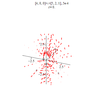 Es ist auch nicht ganz einfach, den Strom mit den Dichteschwankungen zu synchronisieren, weil das auch von der Wiedergabe des Browsers abhängt. Also bitte beim Betrachten der Bilder etwas Phantasie walten lassen: große Dichteschwankungen sollten zeitgleich mit großen Strompfeilen dargestellt werden (der Rechenaufwand für eine Überlagerung der Animationen wäre enorm hoch). Die weiteren Simulationen (rechts und unten) sind mit gleichen Gewichten der überlagerten Zustände berechnet, also im Maximum der Emission oder Absorption. |