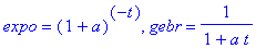 c) Neben dem exponentiellen Abklingen (expo) einer Schwingung kommt auch ein Abklingen vor, das umgekehrt proportional zur Zeit ist (gebr). Man kann die Typen des Abklingens so vergleichen: