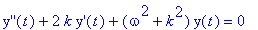 > dg:=yss(t)+2*k*ys(t)+(omega^2+k^2)*y(t)=0;simplify(dg);