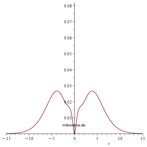 was tatsächlich zu eine lineare Rückstellkraft zur Folge hat. 3. Dielektrikum: Nun wird der "punktförmige" Atomkern durch eine externe Kraft aus der Elektronenhülle (rot) herausgezogen, wobei er anscheinend den negativen Ladungsschwerpunkt mitnimmt. Wird er harmonisch schwingen, wenn man die externe Kraft abschaltet? Warum ist die harmonische Schwingung so "wichtig"? Darauf gibt es eine einfache Antwort: man kann sie mathematisch leicht beschreiben, nicht nur in der Mechanik (Federpendel) oder in der Elektrizitätslehre (Schwingkreis, Dipolantenne), sondern auch in der Quantenmechanik. Dort heißt es dann "Übergangsdipolmoment": Also wenn das Elektron sogar quantenmechanisch harmonisch schwingt, dann muss das Modell doch stimmen! Das Problem ist nur, dass sich das Elektron im Atom nicht in einem quadratischen Potential befindet, sondern in einem 1/r-Potential, bzw. es gilt nicht Kraft ~ r, sondern Kraft ~1/r2. Die folgenden Visualisierungen sind alle in atomaren Einheiten gerechnet (man lässt einfach alle SI-Einheiten weg bzw. setzt alle Naturkonstanten = 1, siehe auch Anmerkungen zu atomaren Einheiten), Abszisse x = "orientierter Abstand". Wir betrachten zunächst die freie Schwingung. Freie Schwingung