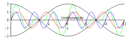rote Welle mit der gleichen Geschwindigkeit wie ihre Überlagerung