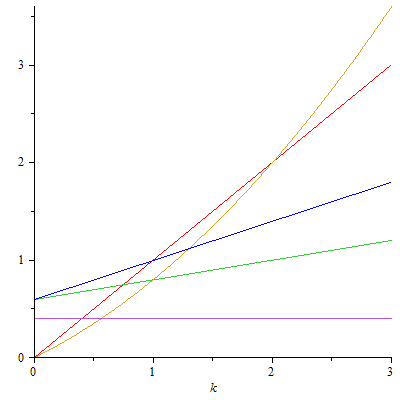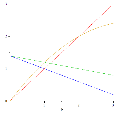~ k² (grün) hat ein Extremum (Nullstelle der