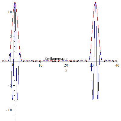 die Einhüllende (rot) wieder ein Gauß-Paket,